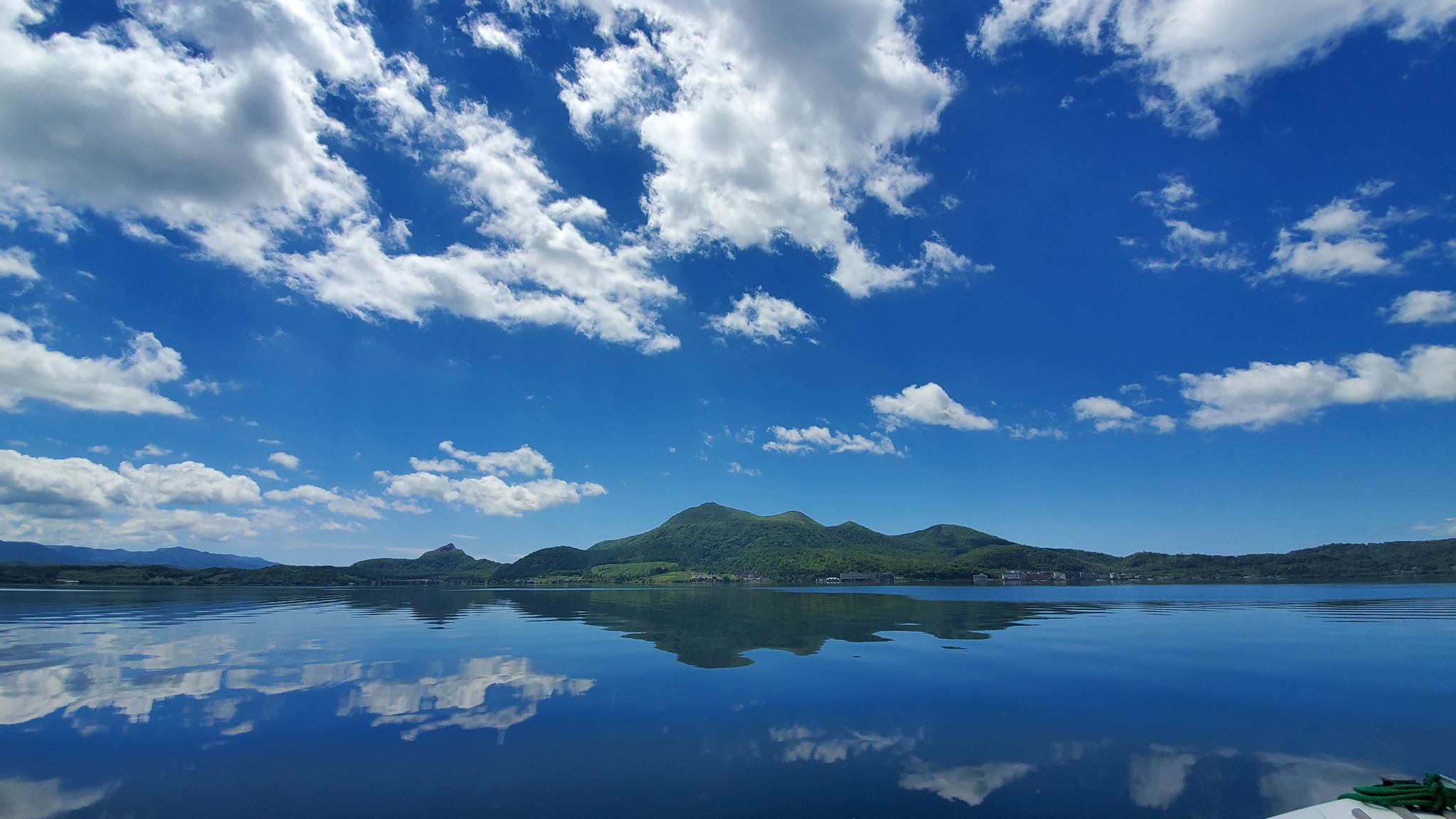 この日はとてもきれいな青空で、その青が湖面を美しい洞爺湖ブルーに彩りました。