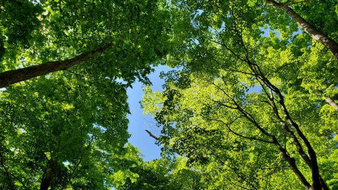 木々の間から見える青空、静寂の中聞こえるのはエゾハルぜミの声と鳥の鳴き声・・・